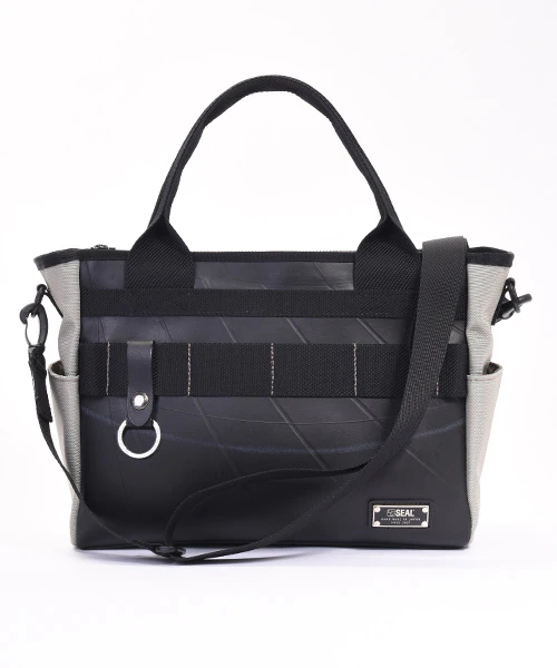 - タイヤチューブと撥水性の高いナイロン素材を組み合わせた、防水性・耐久性に優れたカートトートバッグ。雨の日でも安心して使用できます。