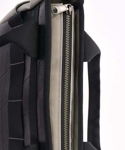 - しっかりマチを取ったメイン収納は見た目以上の大容量で、ファスナー式でセキュリティ面も安心。背面ボタンポケットやサイドポケット、内部のボトルホルダーやオープンポケットなど、荷物を整理しやすい多彩な収納を備えています。