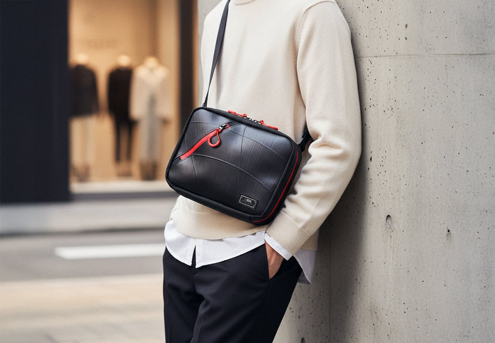 「デジタル時代のブリーフケース」大きめサイズのオーガナイザーショルダーバッグ。